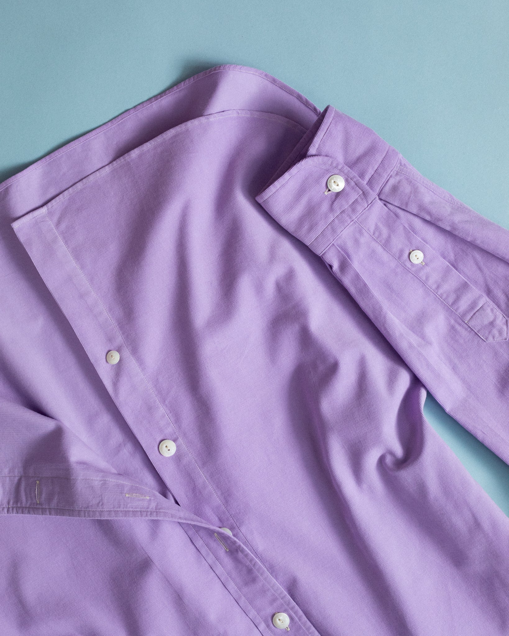 Here a princely needlecord, soft as butter, fine as a silk handkerchief, washed + dusty-toned lavender. It's more sawtooth than anything made of iron.